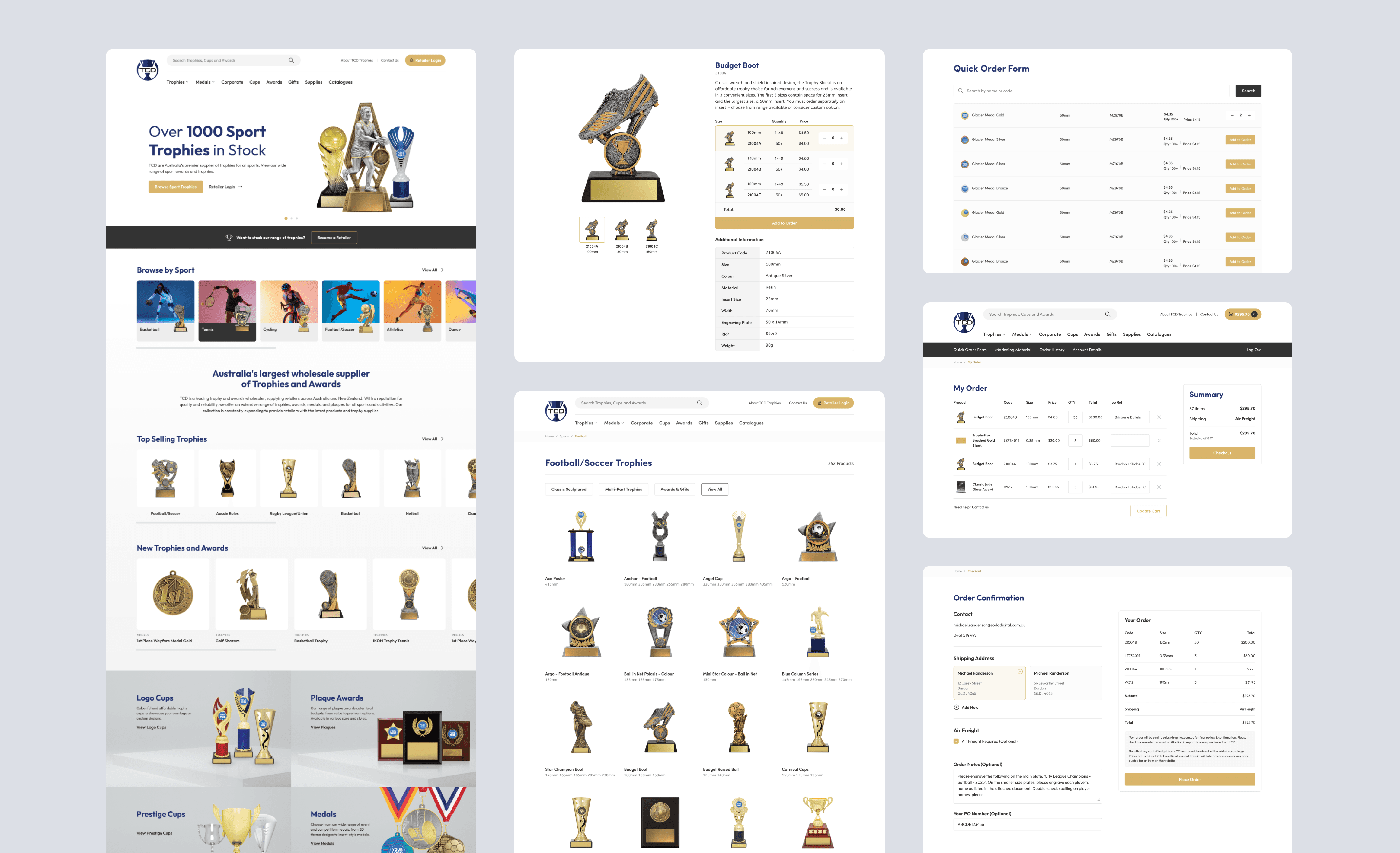 Redesign of an ecommerce platform selling trophies and awards for schools, sports leagues, and corporate events. Customers frequently purchase personalized trophies in bulk, where small errors in customization or quantity can lead to costly mistakes. The redesign focused on transforming a fragmented ordering experience into a structured end-to-end flow, improving product discovery, customization, and bulk purchasing across the system.