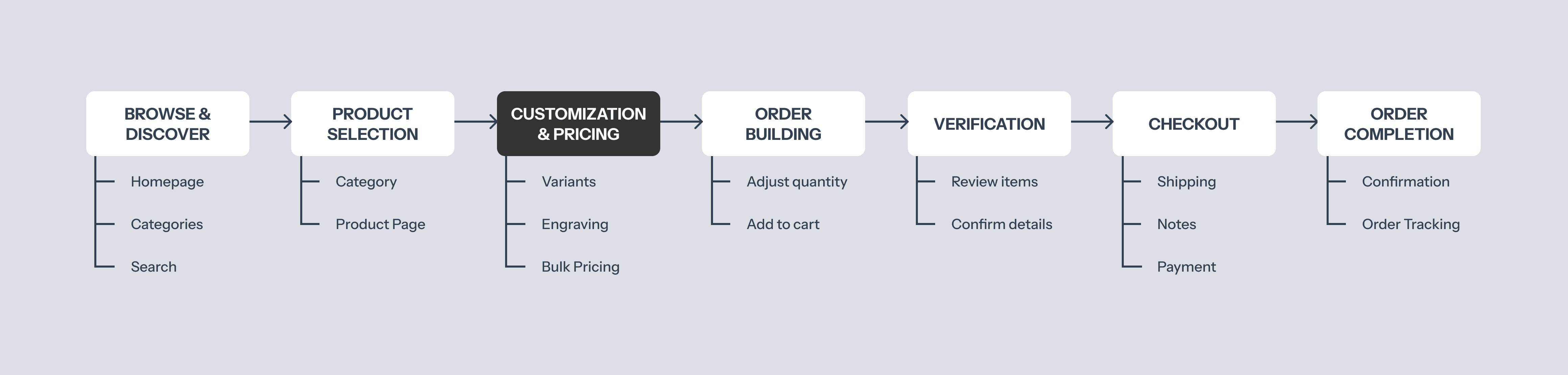 The redesign introduces a structured ordering flow that connects product discovery, customization, and checkout into a cohesive system. Key interactions such as engraving, product options, and quantity selection are consolidated, allowing customers to configure and complete orders without navigating across disconnected steps.